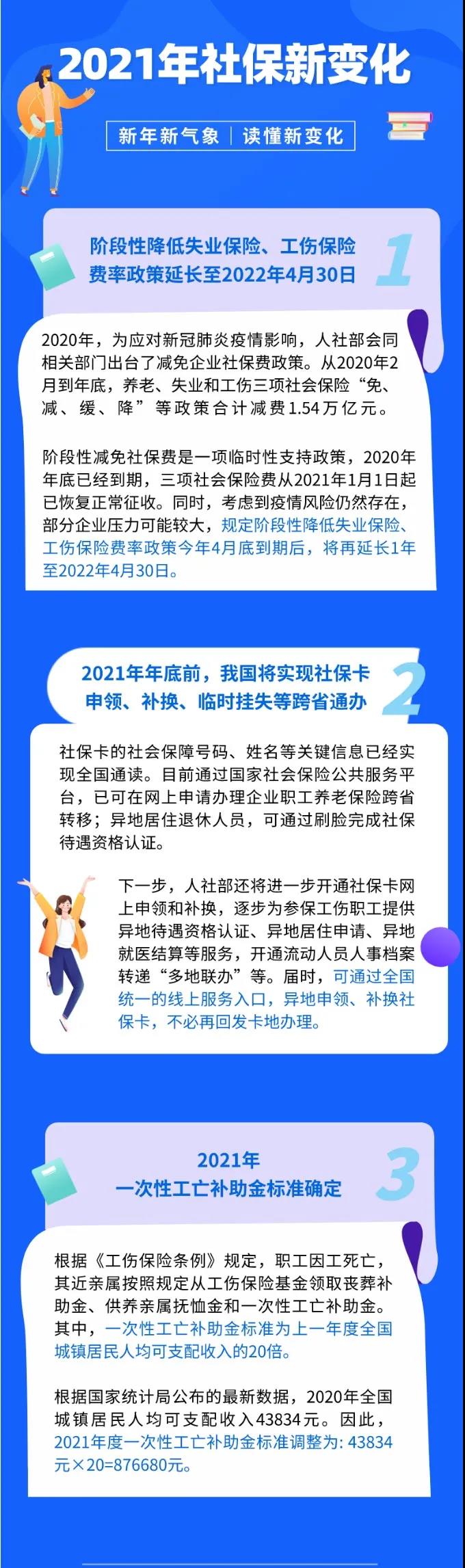新年新氣象,2021年社保政策也有新調(diào)整,主要涉及醫(yī)療、失業(yè)、工傷等多方面。在階段性降低失業(yè)保險(xiǎn)、工傷保險(xiǎn)費(fèi)率方面,減免支持政策將延長至2022年4月30日。
