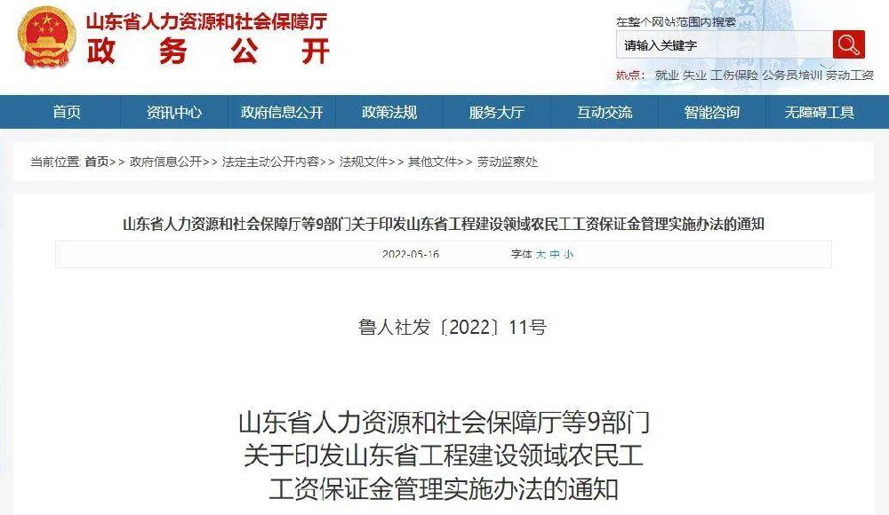 日前,山東省人力資源和社會保障廳等多部門聯(lián)合印發(fā)了《山東省工程建設領域農(nóng)民工工資保證金管理實施辦法》,從制度層面為規(guī)范山東工程建設領域農(nóng)民工工資保證金管理提供了法律依據(jù),以下為政策解讀: